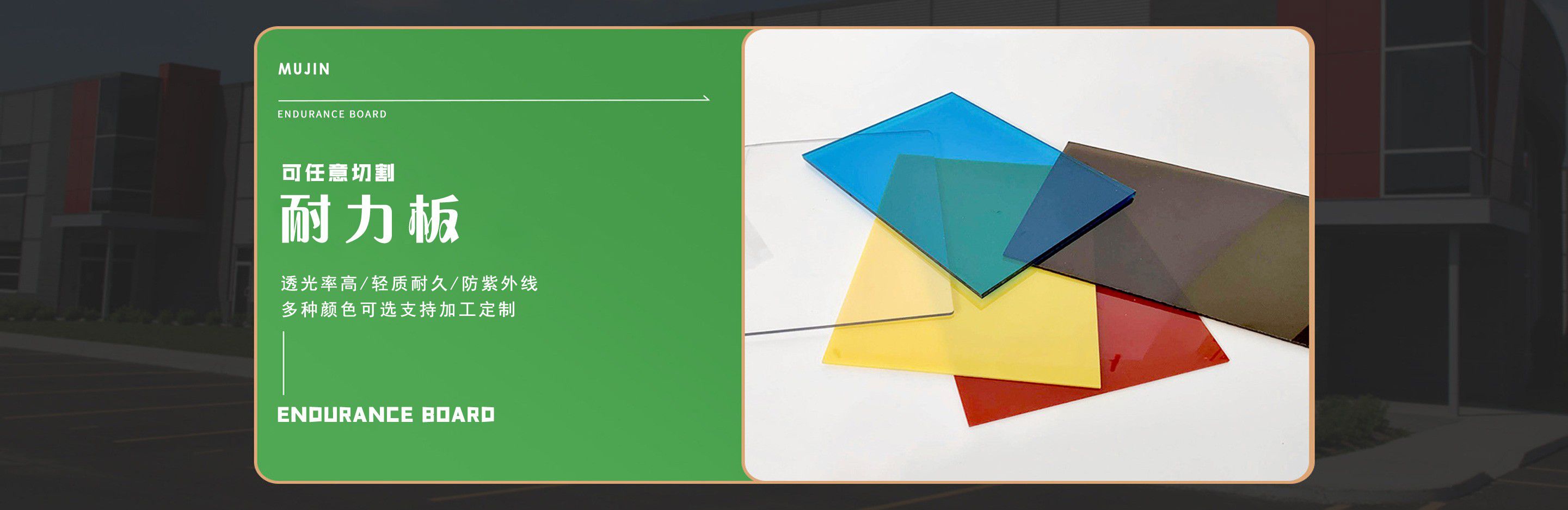 聊城市沐金塑膠有限公司注冊資金2180萬元,占地20000余平方,擁有自建廠房15000平方,員工100余名。10余年來,公司主營耐力板,鎖扣耐力板,耐力板深加工,無動力通風器,組合雨搭,PVC硬脂板,耐力板廠家等板材的發展戰略,逐漸成長為綜合性企業?! 」緭碛卸鄺l板材共擠生產線,采用世界知名品牌進口原材料和先進工藝,依據完善的ISO9001質量管理體系和ISO14001環境管理體系,為產品的卓越品質提供了強有力的保證。憑借過硬的創新能力和堅實的硬件基礎,贏創已成為國內領先的熱塑性板材生產商,產品被廣泛應用于建筑業、農業、工業、廣告業、安防行業及DIY領域。 公司始終致力于通過提供最優的板材應用解決方案,為客戶創造最高的價值;堅守創新、質量、靈活、服務和速度的核心價值觀;堅持“完美的產品需要完美服務的支持”的經營理念,努力實現成為世界領先的板材與解決方案供應商的夢想?! ≡谖磥?,公司將立足客戶需求,不斷改變和完善現有產品,拓展產品線和充分開發板材的應用領域,為客戶創造全方位的價值。同時更好地實現員工的價值,實現公司團隊的價值。我們將與您一起創贏未來! 企業使命:成為世界領先的板材與解決方案供應商?! 」驹妇埃和ㄟ^提供最優的板材應用解決方案,為客戶創造最高的價值?! 『诵膬r值觀:質量...
